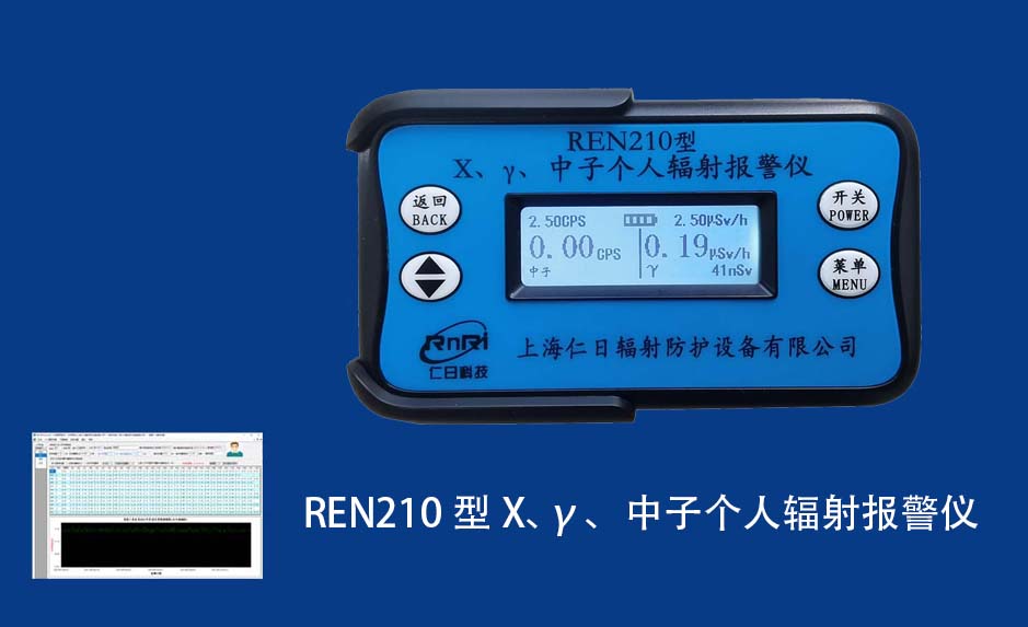 REN210型X、γ、中子個人輻射報警儀內(nèi)置SiPM和鋰玻璃晶體組成中子探測器儀器,采用反照率方式探測中子射線,同時也能探測X、γ射線。因此它可同事監(jiān)檢測X、γ、中子三種射線。能顯示工作場所的劑量當(dāng)量率和累積劑量,更換電池時,日期及累積數(shù)據(jù)能永久保存。可選配RenRiPersonal個人劑量管理軟件,該軟件可存儲多個人的歷史數(shù)據(jù),能記錄日累積、月累積、年累積、輻照時長、計算平均劑量率、扣除或不扣除本底輻射,且以文字和圖譜的方式展現(xiàn)數(shù)據(jù)。廣泛應(yīng)用于環(huán)保、化工、水泥、煤礦、土木工程、石油、醫(yī)院、疾控、進出口商檢、核電、加速器、機場、中子源庫和其他安檢、邊境控制海關(guān)檢測等領(lǐng)域中的工作人員進行個人安全防護監(jiān)測及放射性提示。